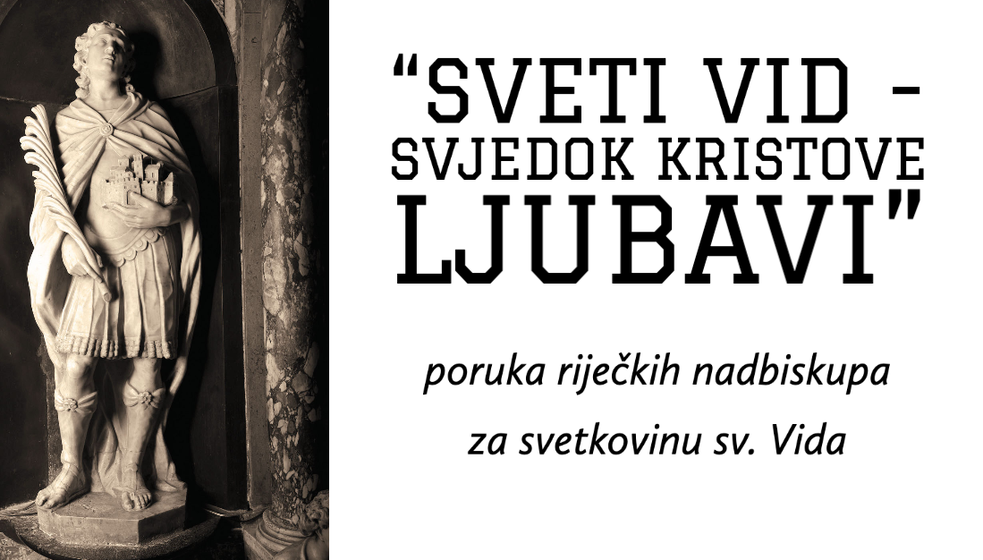 Približavajući se slavlju sv. Vida, nebeskog zaštitnika naše Riječke nadbiskupije i grada Rijeke, želimo vam uputiti poziv na aktivniju uključenost u različite programe koje organiziramo u povodu slavlja, a osobito u proslavu središnjeg euharistijskog slavlja koje će na svetkovinu sv. Vida, nakon ulazne procesije iz Assunte (Vele crikve) s početkom u 18 sati, ispred naše katedrale sv. Vida predvoditi mons. Tomislav Rogić, šibenski biskup, u zajedništvu s nama riječkim nadbiskupima i drugim biskupima Riječke metropolije, biskupima gostima, svećenicima, redovnicima i redovnicama, predstavnicima različitih crkvenih udruga i vjernim Božjim narodom te našim gostima iz drugih vjerskih zajednica kao i predstavnicima političke zajednice i drugih društvenih i kulturnih ustanova.