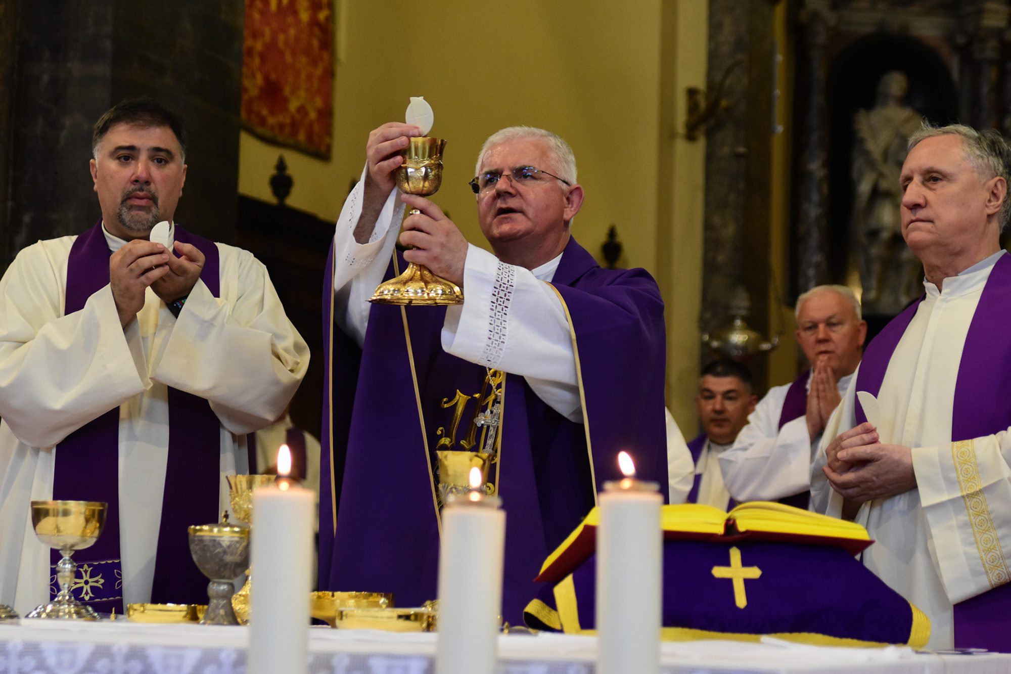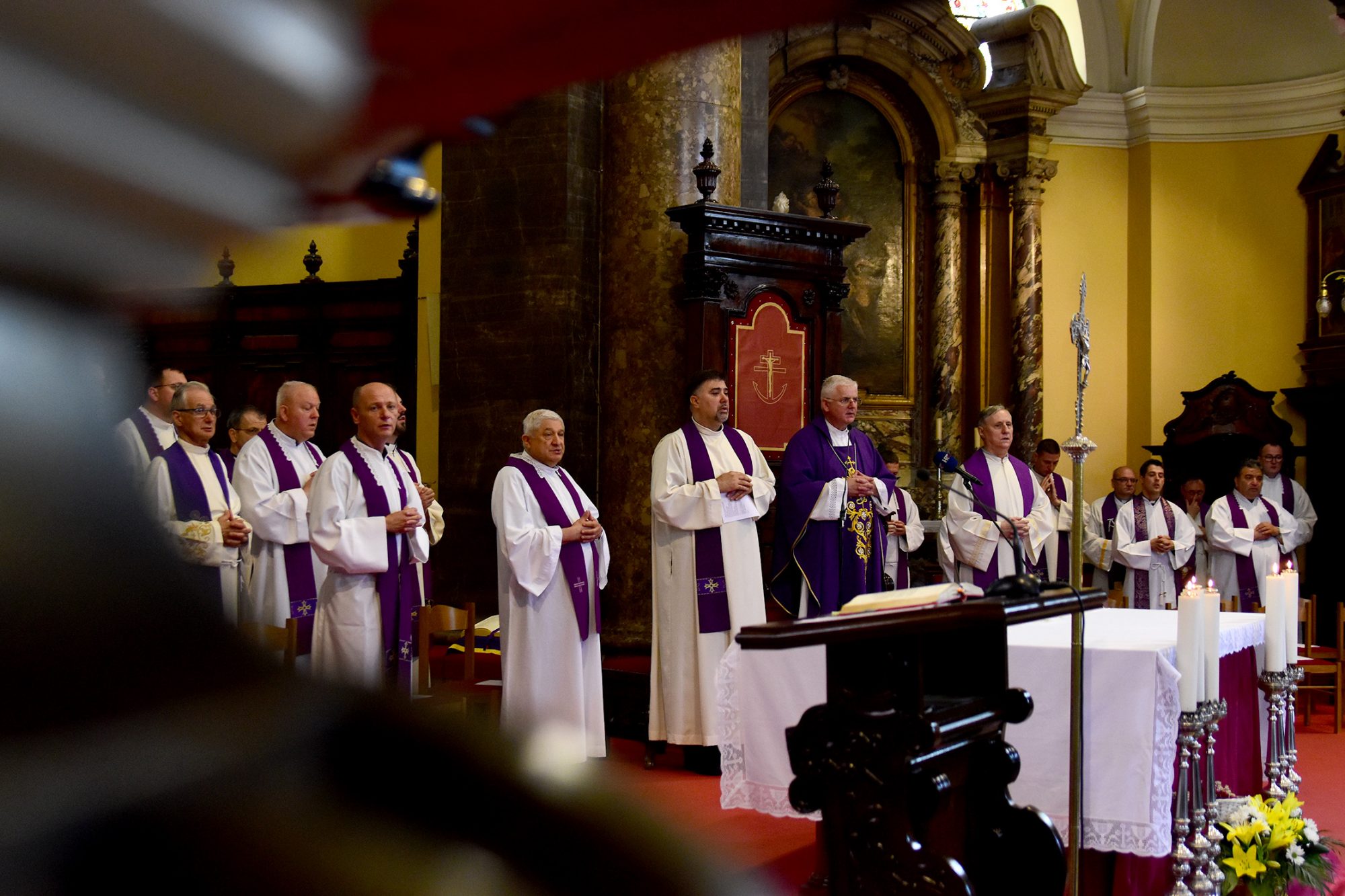 Nadbiskup Mate Uzinić, nakon krunice započeo je misno slavlje riječima pokajanja i molitvom za oprost. „Ovo misno slavlje posvetit ćemo onima koje smo povrijedili, koje smo izdali. Onima kojima nismo bili onakvi kakvi bi trebali biti, koje smo često ne samo povrijedili nego i ostavili u njihovim ranama zainteresirani za nešto drugo. Želimo s poniznošću i sramom pitati za oproštenje, njih, vas i Gospodina. Neka nam Gospodin oprosti kako bi nas ponovno mogao pokrenuti i staviti u svoju službu, kako bi nas učinio dostojnima za ovo otajstvo njegove ljubavi, koje je dar koji primamo da bismo mogli biti uključeni u taj dar.
