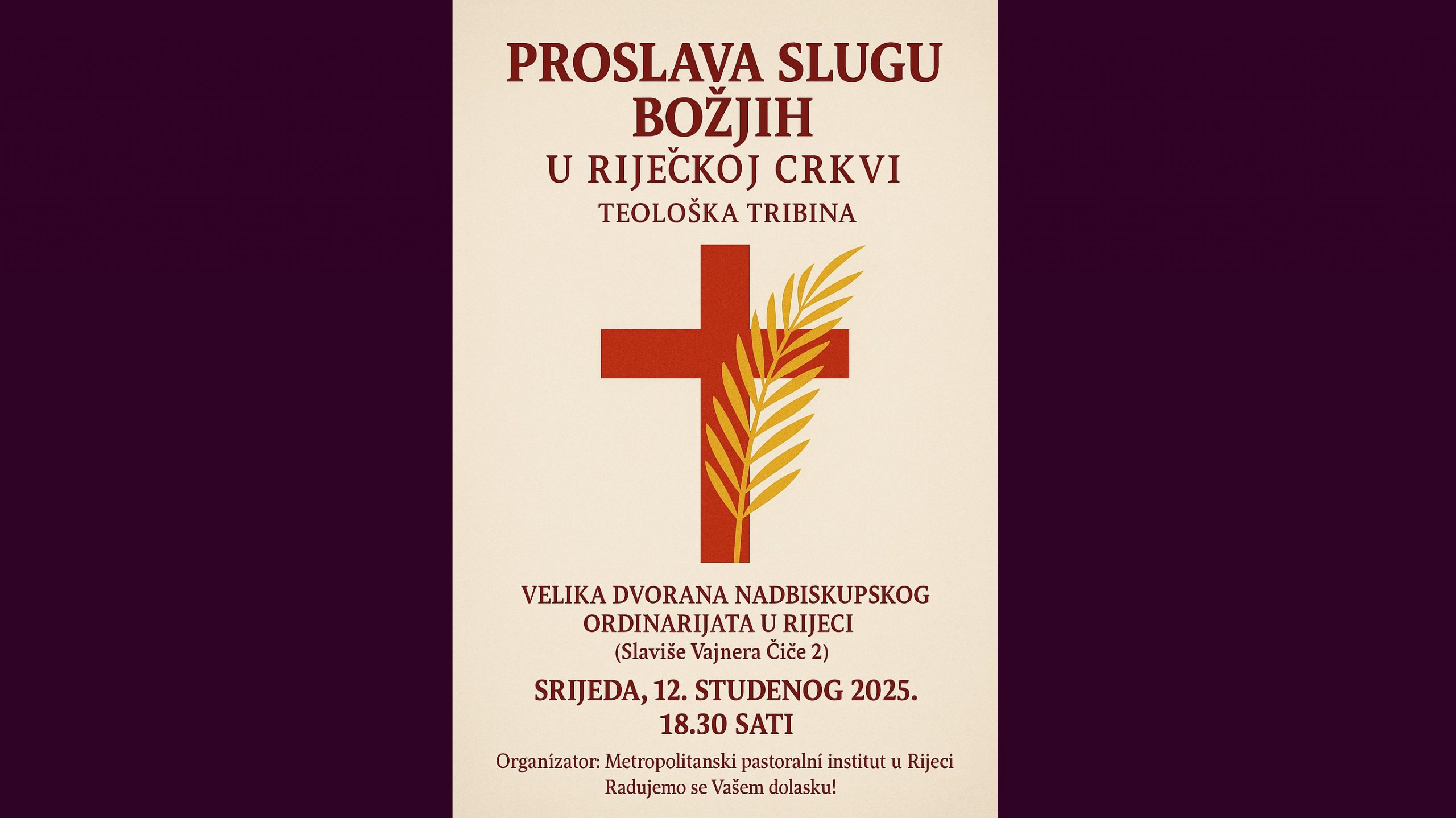 U velikoj dvorani Nadbiskupskog ordinarijata u Rijeci 12. studenog s početkom u 18,30 sati bit će održana teološka tribina pod naslovom Proslava slugu Božjih u riječkoj Crkvi. Tribina će biti u znaku sjećanja na izvanredne svjedoke vjere u Riječkoj nadbiskupiji, njihovog značenja i proslavljanja. Tom će prigodom biti predstavljena i knjiga o svećeniku i mučeniku Stjepanu Horžiću, autora svećenika Ante Zovka.