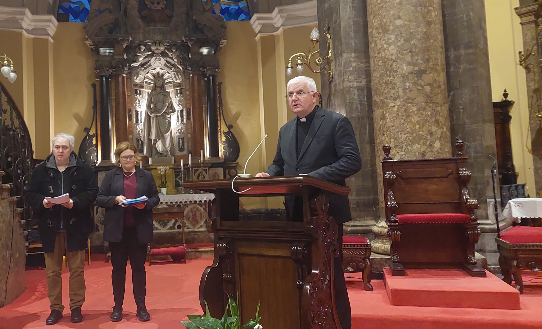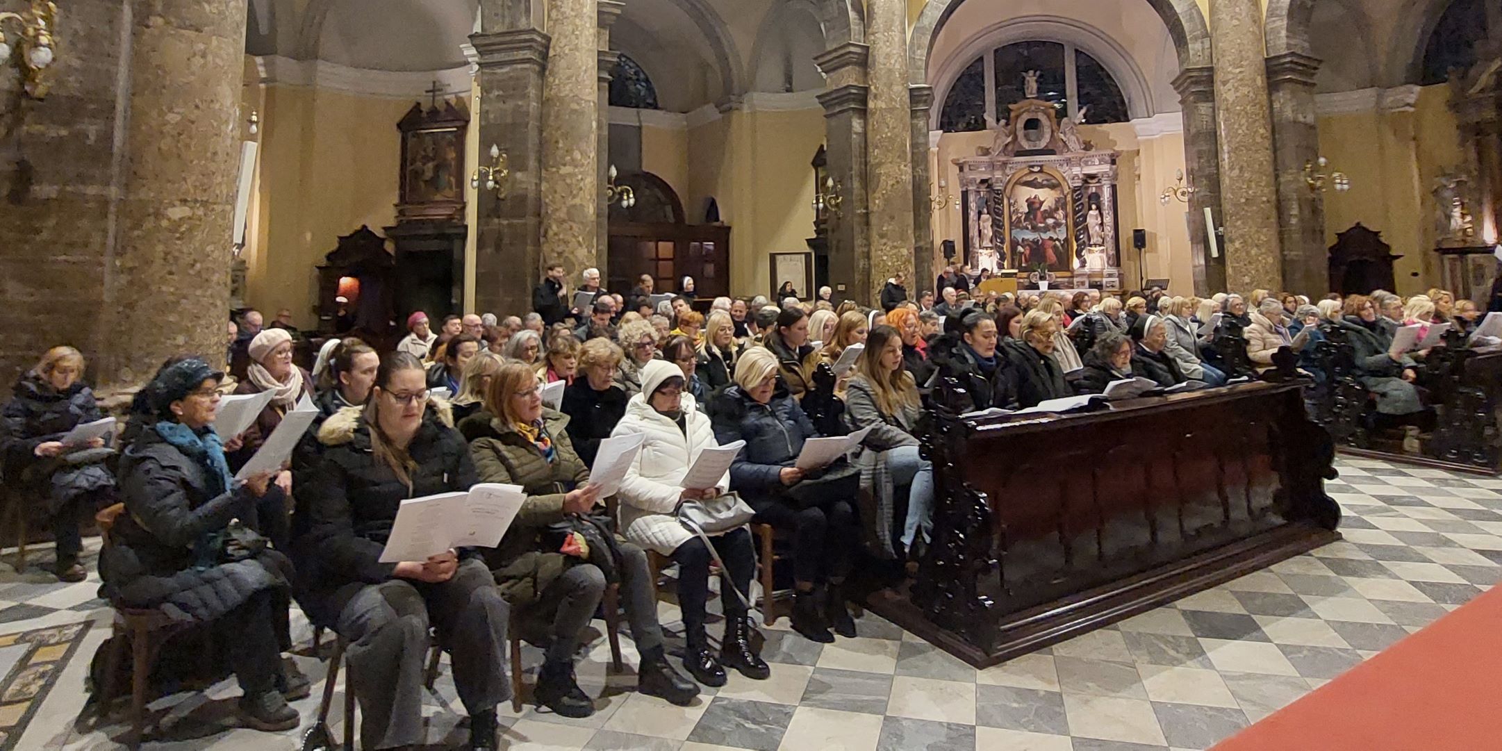 Unatoč nepovoljnim vremenskim uvjetima, buri i snijegu u riječkoj okolici, u katedralu je stigao veliki broj zborašica i zboraša koji su svojom prisutnošću i pjesmom dali posebnu toplinu i radost susretu. Program je počeo duhovnim nagovorom fra Tomislava Šanka, kustoda Franjevačke provincije sv. Jeronima, na temu “Fra Ivo Peran – slavitelj Božje ljepote u 800. obljetnici Pjesme stvorova sv. Franje Asiškog”. Nakon nagovora riječki nadbiskup Mate Uzinić pročitao je Dekret o imenovanju Nadbiskupijske škole za crkvenu glazbu „Fra Ivan Peran“, a voditeljica škole Andrejka Srdoč Geraci predstavila je crtice iz životopisa sluge Božjeg fra Ivana Perana.