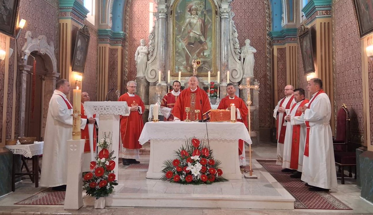 Biskup Petanjak u poučnoj propovijedi osvrnuo se na mučenički život sv. Jurja koji ima rašireno štovanje i u Katoličkoj i u Pravoslavnoj crkvi, kojem su posvećene mnoge zemlje, pokrajine, bratovštine i redovi. “ Kada je netko slavan , onda je sve moguće, kada se nekoga voli onda svaka priča prolazi. To je bitno jer je to ušlo u životopis sv. Jurja. On je rođen od oca Perzijanca, a Perzija je današnji Irak i od majke Kapadočanke, a Kapadocija je današnja Turska. To je vrijeme 3.st. i u to vrijeme još uopće ne postoji islam niti muslimani. U Kapadociji živjela su  tri velika crkvena oca: sv. Bazilije Veliki i njegov brat sv. Grgur iz Nise i  njihov prijatelj sv. Grgur Nazijanski. Zaslužni su za tumačenje Presvetog Trojstva. U ovom vremenu od Uskrsa do Duhova svaki dan na sv. misi čitamo Djela apostolska gdje je sv. Pavao na područjun te Male Azije evangelizirao zajedno s drugim apostolima i svojim suradnicima. I tu je nekada kršćanstvo cvjetalo, a danas ga gotovo nema, sve je to danas islamski svijet. Predaja kaže da je sv. Juraj bio vojni časnik kod perzijskog cara Dacijana a druga kod rimskog cara Dioklecijana. Kako je to moguće? Moguće je jer kada je netko slavan svi ga svojataju  i svi ga hoće, a kada nije neće ga ni njegovi rođeni. Za sv. Jeronima svi se otimaju. Kažu da je rođen u Stridionu a nitko ne zna gdje je Stridon. Svojataju ga i Međimurci i Hercegovci i Talijani. Danas ljude ne zanimaju sveci a nekada su gradovi ratovali kako bi preoteli relikvije nekoga sveca jer to je značilo imati nebesku zaštitu i sigurnost u vremenima ratova, pogibelji, kuge i kolere. U nevolji i muci ljudi su tražili nebeske zaštitnike za koje su vjerovali da će ih razumjeti da će im pomoći. U tu konkretnu egzistencijalnu i ljudsku potrebu  uklapa se sv. Juraj , vojni časnik i mučenik, kao nebeski zaštitnik kojeg se može poželjeti. “ – rekao je Petanjak te je istaknuo kako se u životu sv. Jurja  dogodio sretan ljudski i duhovni spoj jer je rođen u plemićkoj obitelji od oca poganina i majke kršćanke , dobio je plemeniti profinjeni ljudski odgoj kojeg je prožeo evanđeoski Kristov Duh. Odgojen je u obitelji s finim manirima, to se nekada zvali bečka škola i onda još je postao i vojni časnik znači da ima odgovornost za određeni broj ljudi jer časnik se mora časno ponašati i kao pobjednik i kao gubitnik. Kada se to  sve sagleda  onda je sv. Juraj savršeni svetac, savršeni kršćanin.