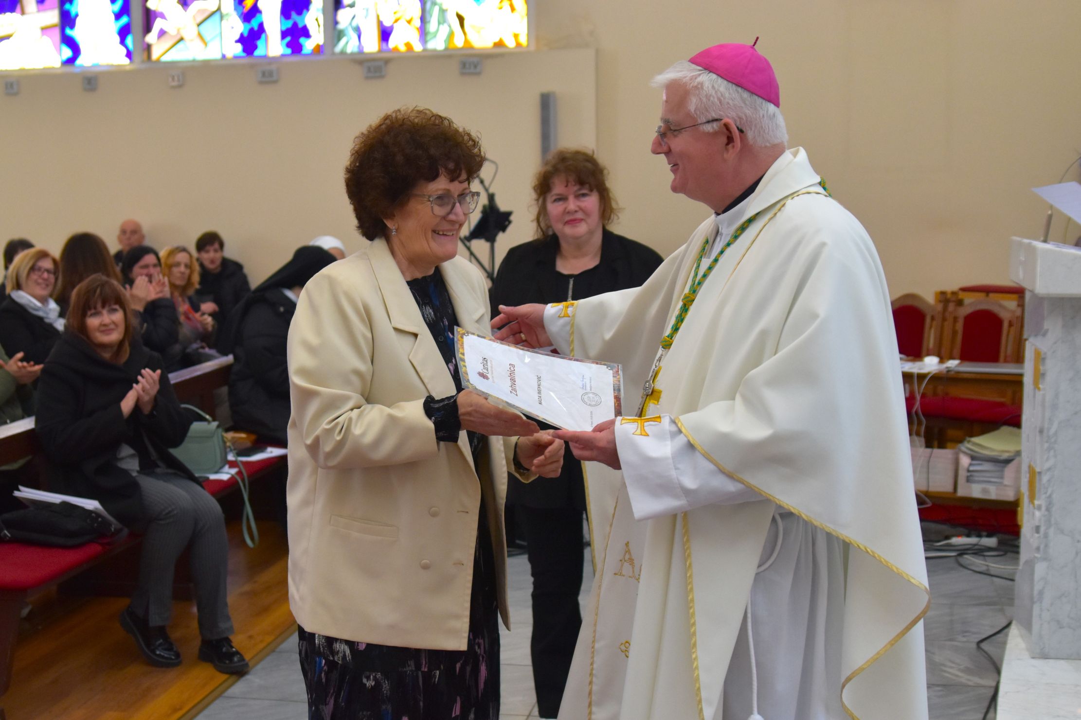 Nakon mise nadbiskup je uručio 27 zahvalnica volonterima i donatorima. Ravnateljica je tom prigodom podsjetila i na brojne programe pomoći koje Caritas nudi ljudima s različitim potrebama: stipendije djeci i mladima, pomoć u kući starijima, integraciju izbjeglicama iz Ukrajine, preventivne zdravstvene akcije i pomoć u lijekovima i ortopedskim pomagalima, pravnu pomoć te pomoć u hrani, higijenskim potrepštinama, drvima za ogrjev i školskom priboru. Ukupno je podijeljeno 500 tisuća eura materijalne i financijske pomoći za oko 4 i pol tisuće upisanih korisnika, od kojih približno 350 redovito prima pomoć.