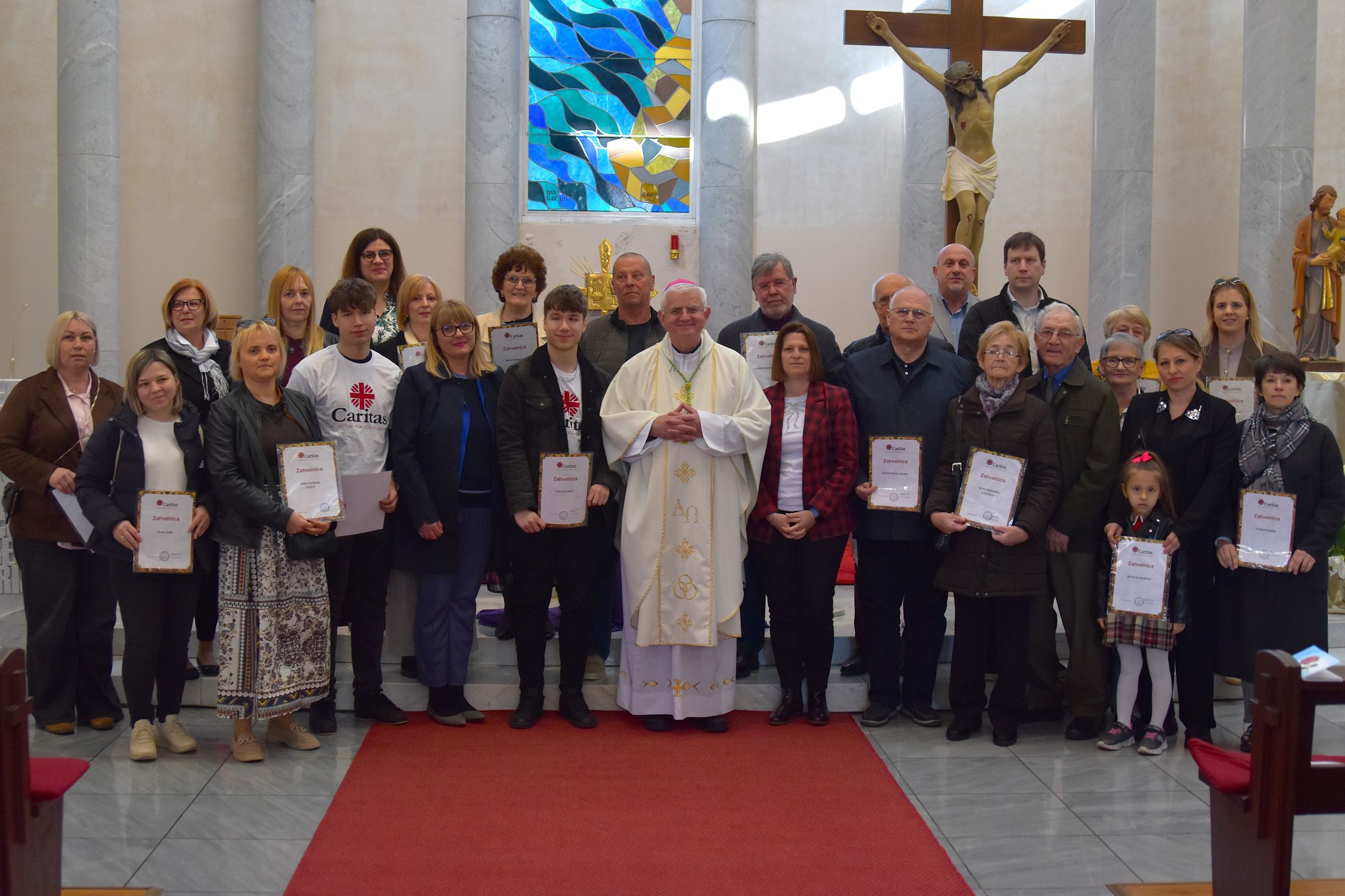 Zahvalnice Caritasa dobilo je 7 volontera župnih Caritasa iz 7 dekanata Riječke nadbiskupije te volonteri i tvrtke koji pomažu rad središnje nadbiskupijske karitativne ustanove. Na slavlju su sudjelovali i predstavnici drugih karitativnih ustanova, Grada Rijeke, ustanova i udruga s kojima Caritas surađuje, a koncelebrirali su župnici iz župa koje su dobile zahvalnicu.